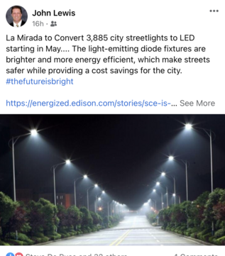 - Every street light in the City has been upgraded to high efficiency brighter LED lighting.