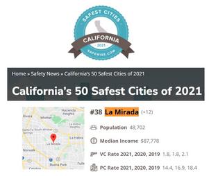 - A strong partnership between the public safety team, the residents and the businesses has kept La Mirada the safest city in the region.
