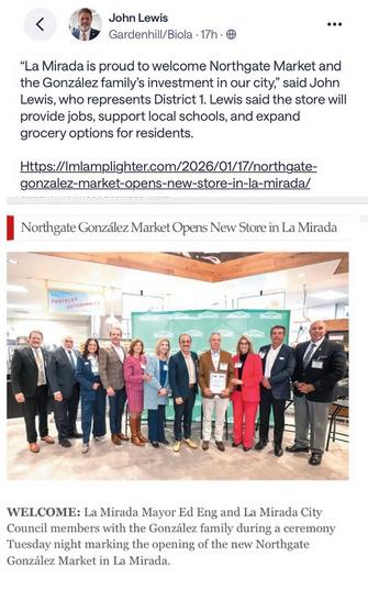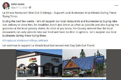 - As your councilmember, I have, and will continue these policies to review economic conditions and review / revitalize the city’s laws (municipal codes, ordinances, etc.) in order to continue to make La Mirada the "Most Business Friendly" and give a competitive advantage over local cities to: